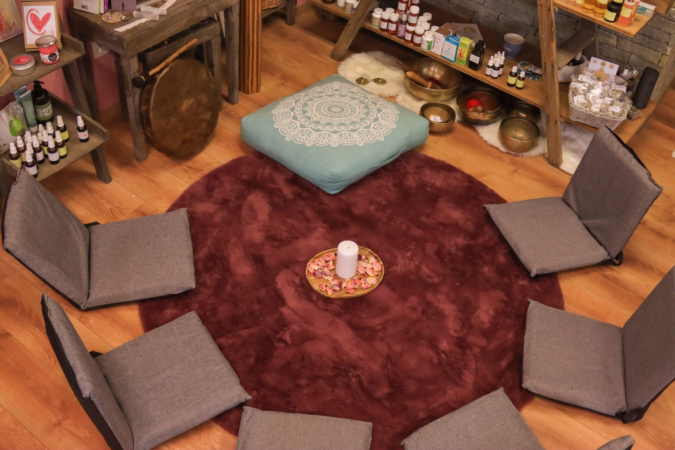 J’organise des ateliers parfois en soirée et parfois en journée sur des thèmes comme favoriser l’exploration de soi, les différentes pratiques spirituelles, le développement personnel mais aussi pour découvrir l’aromathérapie.